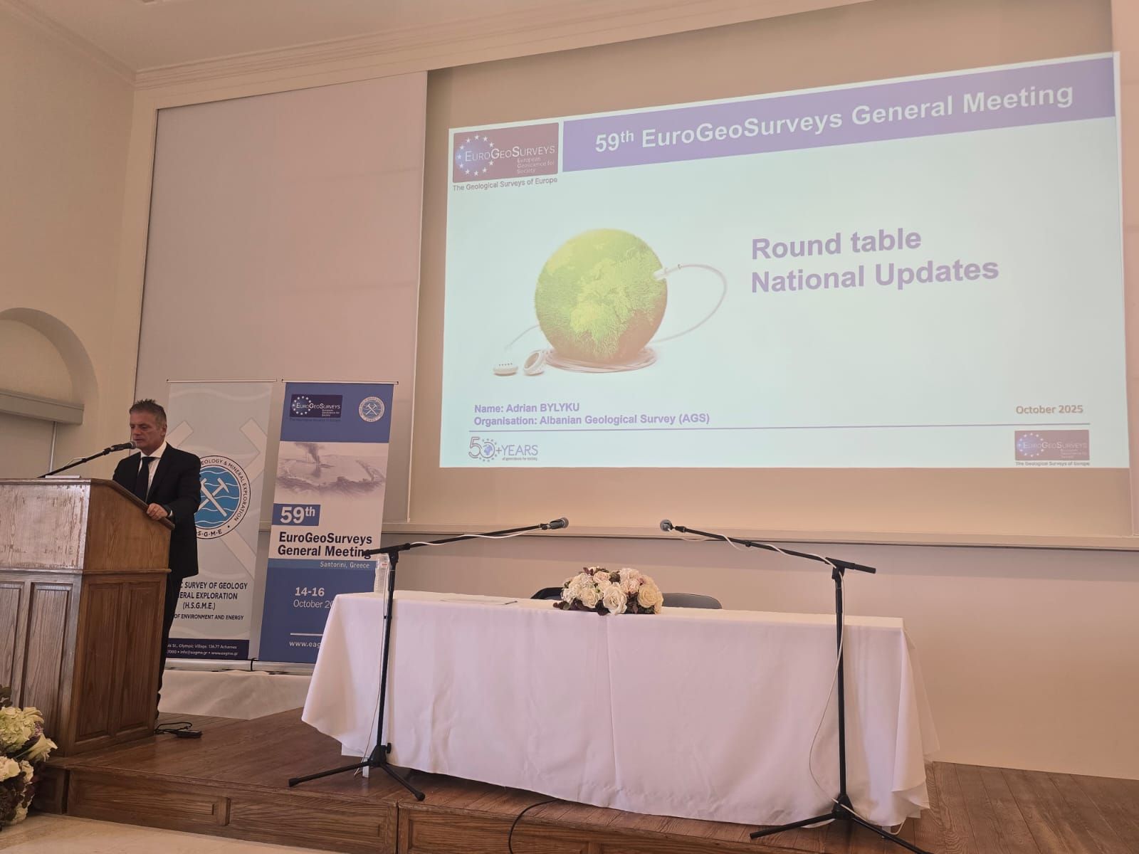 Shërbimi Gjeologjik Shqiptar mori pjesë në Asamblenë e Përgjithshme të 59-të të EuroGeoSurveys (EGS) dhe Workshop-in e Drejtorëve, të zhvilluara në Santorini, Greqi, më 14–16 tetor 2025. Aktiviteti u organizua nga Shërbimi Gjeologjik Grek dhe u drejtua nga Presidentja e EGS, me pjesëmarrjen e përfaqësuesve të të gjitha Shërbimeve Gjeologjike kombëtare të vendeve anëtare të Bashkimit Evropian.